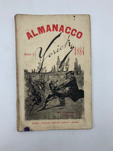 In 8 (cm 14 x 21,5), pp. 77 + (3) con illustrazioni intercalate al testo. Brossura editoriale con macchietta al piatto anteriore, macchie e foro al piatto posteriore. Primo numero dell'Almanacco umoristico illustrato compilato da Yorick (Pier Coccoluto Ferrigni), scrittore e giornalista livornese.