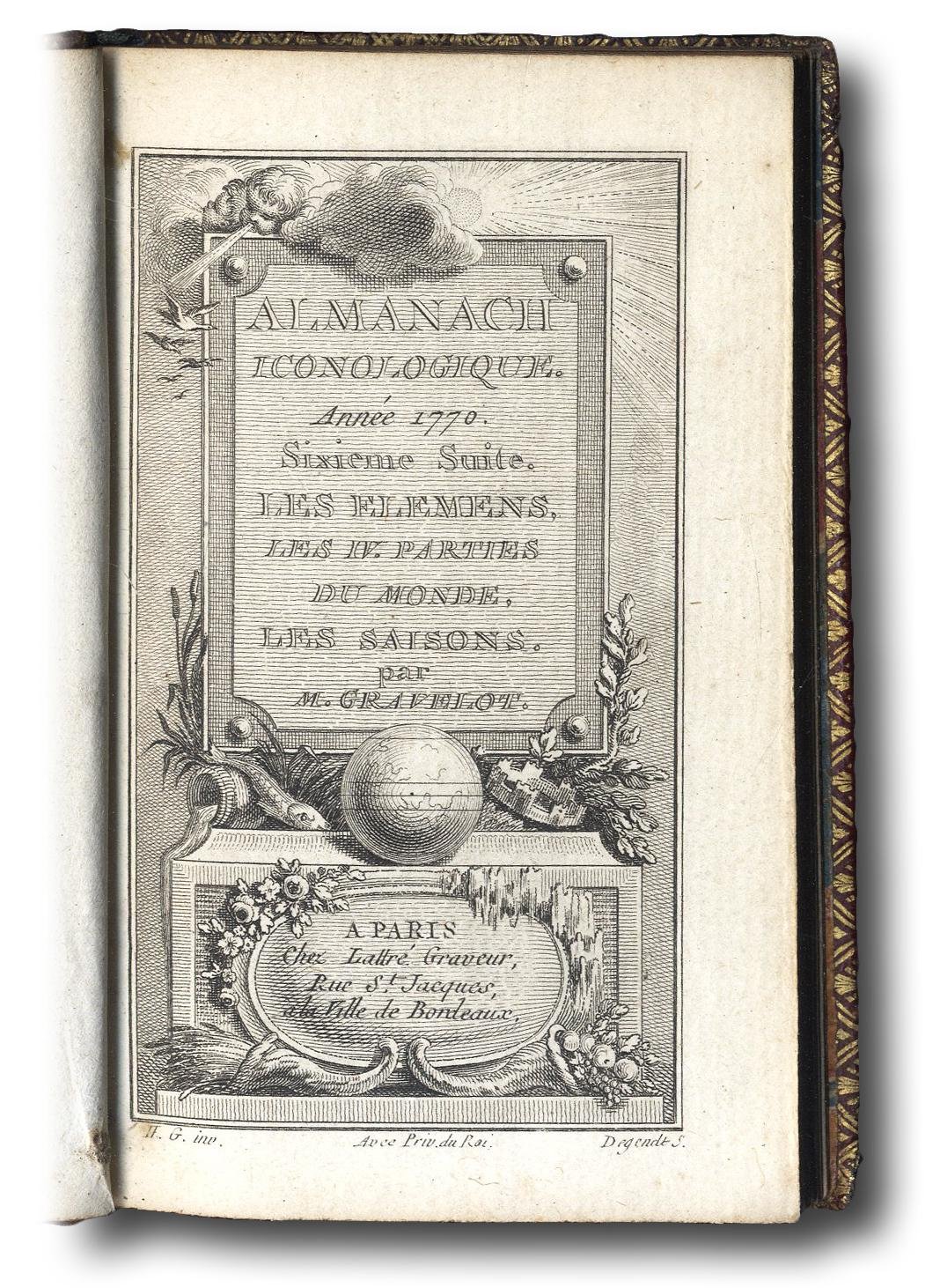 Almanach iconologique. Année 1770. Sixieme suite. Les elemens, les IV. parties du monde, les saisons par M. Gravelot.