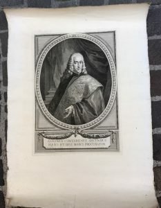 Bel ritratto del Doge Alvise Contarini, inciso da Antonio Baratti da un ritratto eseguito dal pittore bresciano Ludovico Gallina. Foglio marginoso in barbe. Un piccolissimo forellino di tarlo e uno strappo al margine inf. bianco, ma ottimo.Misure foglio 795x445