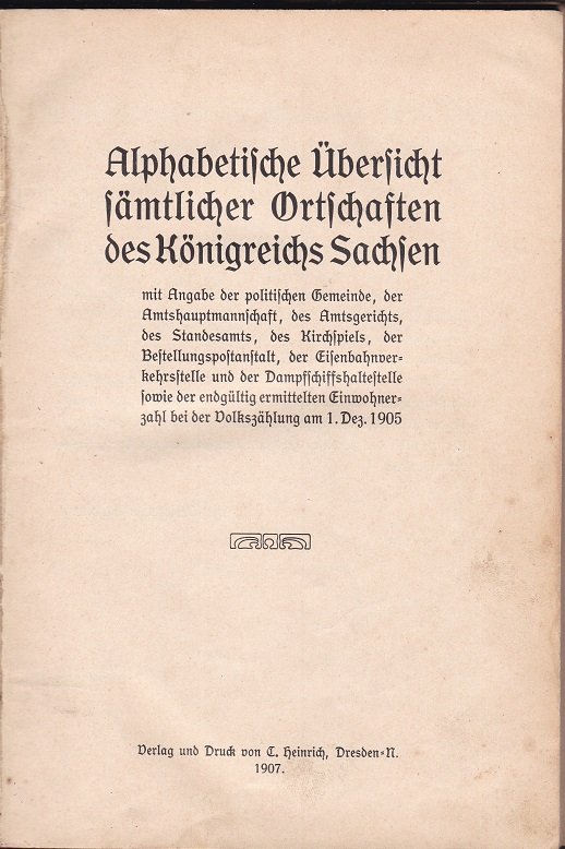 Alphabetische Übersicht sämtlicher Ortschaften des Königreichs Sachsen