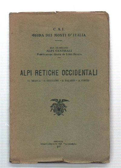 Brossurato. Buone Condizioni. Sez. Di Milano. Alpi Centrali. Pubblicazione Diretta Da Luigi Brasca. Parte I Luigi Brasca - Regione Spluga-Bregaglia; Parte Ii Guido Silvestri - Regione Codera -Ratti; Parte Iii Romano Balabio - Regione Albigna-Disgrazia; Parte Iv Alfredo Corti. - Regione Bernina. 155 Illustrazioni - 9 Cartine A Colori. Il Volume Mostra I Classici Segni Del Tempo Con Leggera Fioritura E Margini Usurati. Segni Di Lettura Sul Dorso, Fogli In Buono Stato Per La Consultazione Scorrevole.