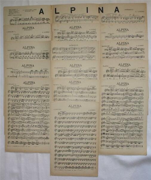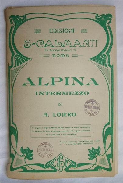In 8. cm 27,5x17. Pp 17. Partitura completa per orchestra senza data ma ultimi anni '20. Caratteristica copertina decorata dell'epoca. Ex libris sulla copertina ed all'interno. Ottime condizioni, margini lievemente usurati. A complete score for orchestra not dated but around 1920's. Carachteristic decorated cover of that period. Ex libris in the cover and in the pages. Very good conditions; worn edges.