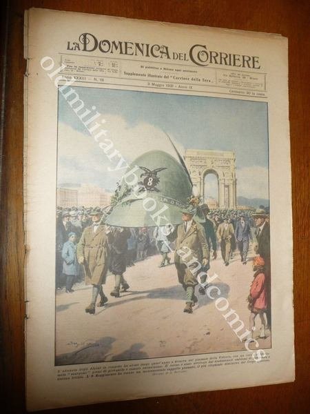 DESCRIZIONE: Domenica del Corriere, Milano, Anno 33 n. 18 (3 maggio 1931). COPERTINA: L'adunata degli Alpini in congedo ha avuto luogo quest'anno a Genova sul Piazzale della Vittoria, con un corteo di trentamila "scarponi" pieni di giovanile e canoro entusiasmo. Il corteo è stato avviavato dai tradizionalio emblemi di pittoresca e festosa letizia. l'8° Reggimento ha recato un monumentale cappello piumato, il più eloquente distintivo del Corpo glorioso. (Disegno di A. BELTRAME) RETRO: Budapest, concorso per le reginette della casa. CONDIZIONI: Ottime con spillatte, NO RILEGATURA, presente anche la sovracc. azzurrina. PESO / WEIGHT: 100 gr. without package