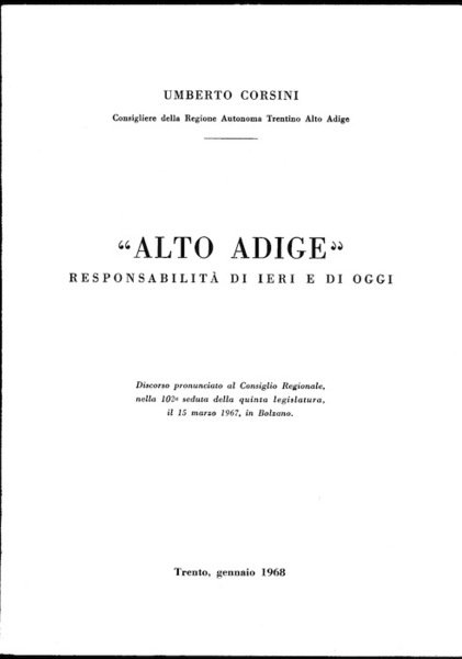 - Discorso pronunciato al Consiglio regionale nella 102° seduta della quinta legislatura, il 15 marzo 1967, in Bolzano.