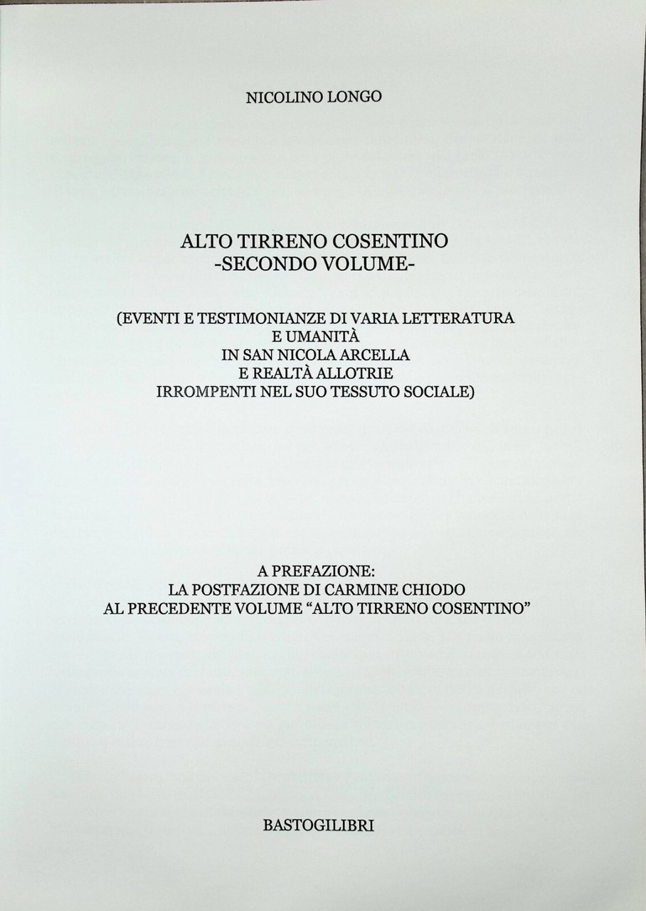 Alto Tirrento Cosentino 2^ Volume Libro Nicolino Longo Bastogi 9788855010559