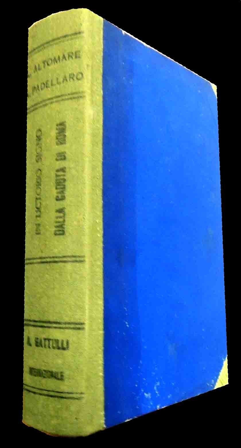 Leonida Altomare, In lictorio signo. Antologia di autori latini ad uso dei ginnasi inferiori. Conforme ai programmi 7 maggio 1936-XIV, Dott. Luigi Macrì Editore, Bari 1938, pp. 427, ill. b.n., 10 c. di tavv. f.t. ill. b.n. di cui 2 ripiegate, cm 22, legatura coeva in mezza tela con titoli al dorso e angoli. Legato con: Nazareno Padellaro, Armando Lodolini, Dalla caduta di Roma Antica alla dominazione austriaca. Per le scuole ginnasiali inferiori (Secondo i vigenti programmi), Società Editrice Internazionale, Torino 1931, pp. 186, ill. b.n., 23 c. di tavv. f.t. ill. b.n. Due volumi in un tomo. Il volume di Padellaro-Lodolini fa parte della collana: Sommario di storia per le scuole italiane, vol. 2. Firma d’appartenenza al frontespizio della seconda opera. Leggere tracce d’uso, una piccola porzione di tavola mancante e qualche sopradico segnetto di lapis alla prima opera, minime fioriture, perfette seconda opera e legatura.