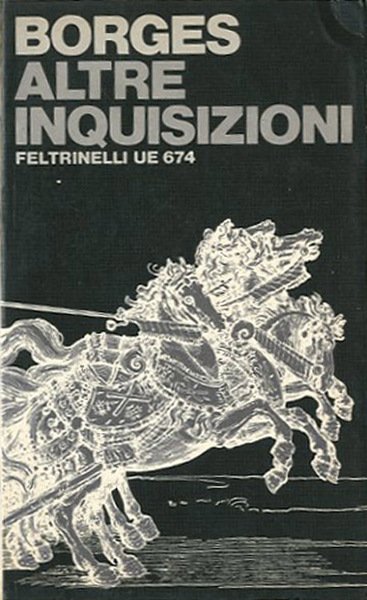 189 p. ; 18 x 11 cm. Universale Economica. Questo volume è una raccolta di saggi scritta da Jorge Luis Borges nel 1952. Contiene circa 35 brevi articoli tra la critica letteraria e il racconto filosofico. Indici: La muraglia e i libri, La sfera di Pascal, Il fiore di Coleridge, Il sogno di Coleridge, Il tempo e J.W. Dunne, La creazione e P.H. Gosse, I timori del dottor Américo Castro, Il nostro povero individualismo, Quevedo, Magie parziali del «Don Chisciotte», Nathaniel Hawthorne, Nota su Walt Whitman, Valéry come simbolo, L'enigma di Edward Fitzgerald, Sopra Oscar Wilde, Sopra Chesterton, Il primo Wells, I «Biathanatos», Pascal, L'idioma analitico di John Wilkins, Kafka e i suoi precursori, Metamorfosi della tartaruga, Del culto dei libri, L'usignolo di Keats, Lo specchio degli enigmi, Due libri, Annotazione del 23 agosto 1944, Sopra il «Vathek» di William Beckford, Sopra «The Purple Land», Da qualcuno a nessuno, Forme di una leggenda, Dalle allegorie ai romanzi, Nota su (intorno a) Bernard Shaw, Storia degli echi d'un nome, Il pudore della Storia, Nuova confutazione del tempo. Prefazione di Francesco Testori Montalto. Titolo originale di opera: "Otras inquisiciones". Traduzione dallo spagnolo di Enrico Facchini. Brossura editoriale, coperta in cartoncino flessibile plastificato, illustrata in b/n. Codice libreria 2107.