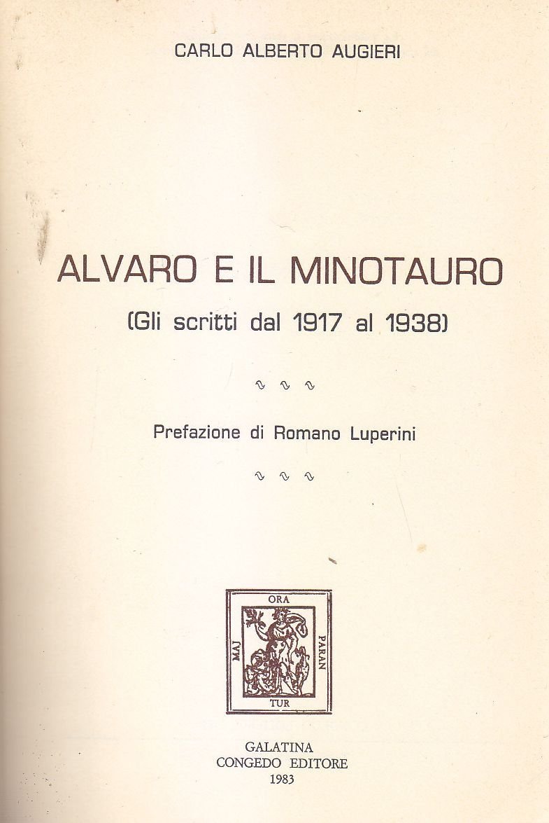 ALVARO E IL MINOTAURO scritti 1917 1938 di Carlo Alberto Augieri Autografo libro