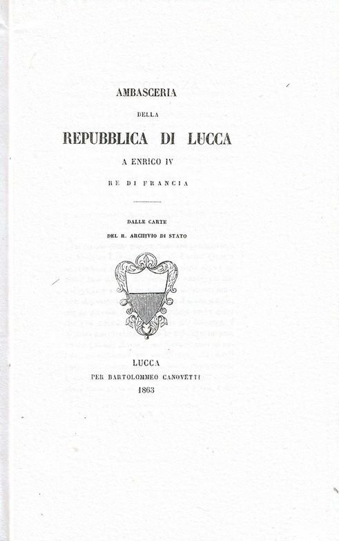Ambasceria della Repubblica di Lucca a Enrico IV Re di Francia, nelle carte del R. Archivio di Stato.