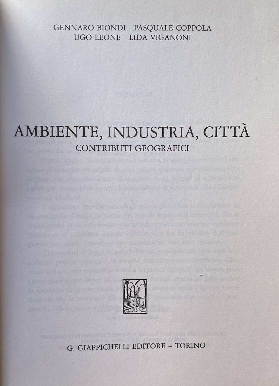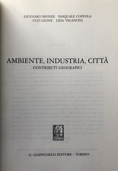 AMBIENTE, INDUSTRIA, CITTÀ. CONTRIBUTI GEOGRAFICI
