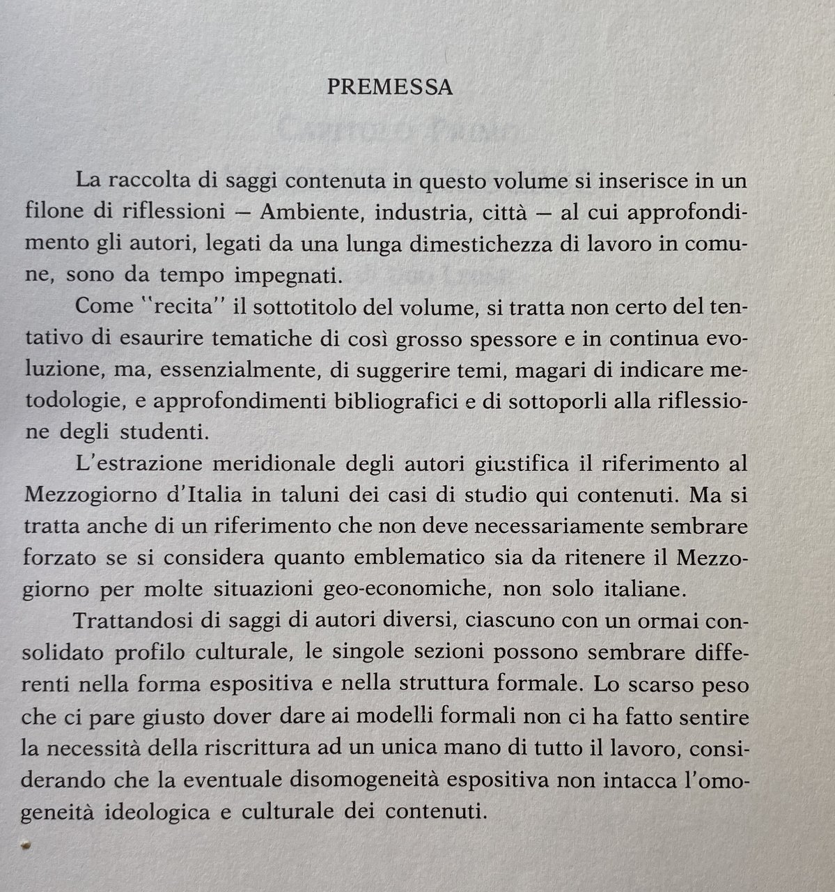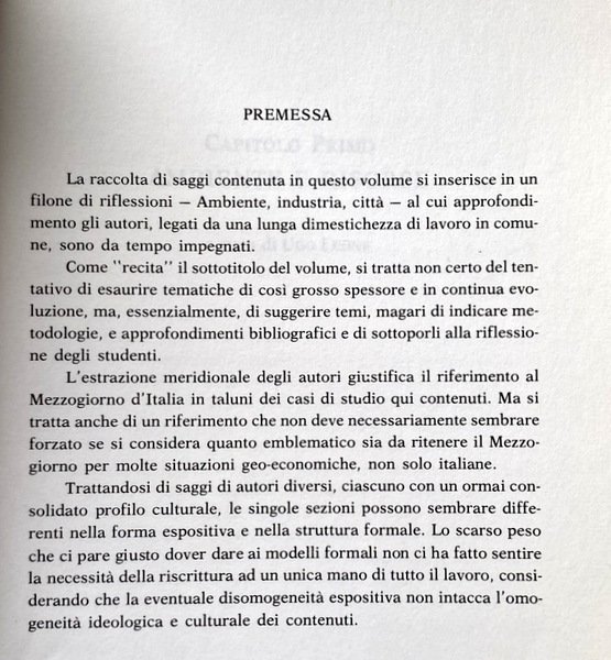 La raccolta di saggi contenuta in questo volume si inserisce in un filone di riflessioni al cui approfondimento gli autori sono da tempo impegnati. Come recita il sottotitolo del volume, si tratta non certo del tentativo di esaurire tematiche di così grosso spessore e in continua evoluzione, ma, essenzialmente, di suggerire temi, magari di indicare metodologie, e approfondimenti bibliografici e di sottoporli alla riflessione degli studenti. L'estrazione meridionale degli autori giustifica il riferimento al Mezzogiorno d'Italia in taluni dei casi di studio qui contenuti. Ma si tratta anche di un riferimento che non deve necessariamente sembrare forzato se si considera quanto emblematico sia da ritenere il Mezzogiorno per molte situazioni geo-economiche, non solo italiane. Trattandosi di saggi di autori diversi, ciascuno con un ormai consolidato profilo culturale, le singole sezioni possono sembrare differenti nella forma espositiva e nella struttura formale. Lo scarso peso che ci pare giusto dover dare ai modelli formali non ci ha fatto sentire la necessità della riscrittura ad un unica mano di tutto il lavoro, considerando che la eventuale disomogeneità espositiva non intacca l'omogeneità ideologica e culturale dei contenuti.