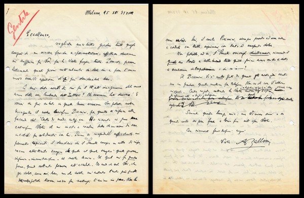 lettera manoscritta e firmata di Ambrogio Ballini di 2 facciate datata Milano, 25 Dicembre 1939 scritta a Giovanni Gentile; buon es.