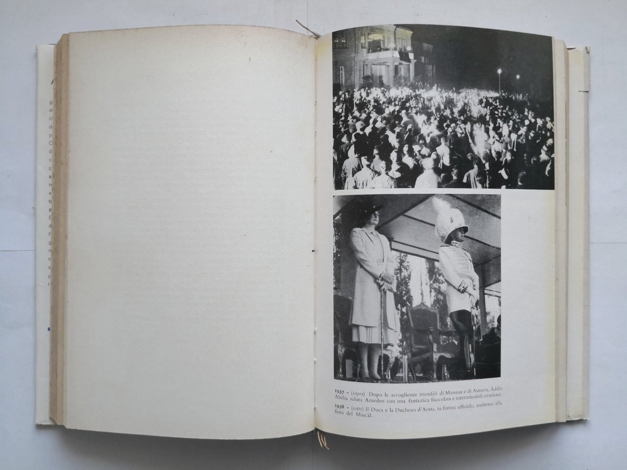 AMEDEO D'AOSTA IL PRIGIONIERO DEL KENIA di Alfio Berretta. "Il diario di Amba Alagi". Edizioni Librarie, 1956. Collana "I Savoia" Numero 3. 355 pagine, fotografie in bianco e nero fuori testo. Copertina editoriale in tutta tela con sovraccoperta. Stato di conservazione: molto buono (pagine normalmente ingiallite, sovraccoperta sciupata) Libro usato narrativa