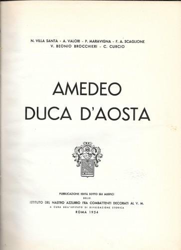 in 4°, pp. 314, leg. edit. p/seta azzurra moiré con tit. in oro, grande antip. con stemma a colori. Biografia del Principe-soldato con 45 ill. f.t. di cui 3 a colori; 2^ ediz. a cura Istituto di Divulgazione Storica. Dall'indice: Da Capodimonte a Nairobi; Il principe soldato; Ricordo dell'aviatore; Il colonizzatore; L'africanista; Bibliografia. Lievi aloni alla leg. 634/25
