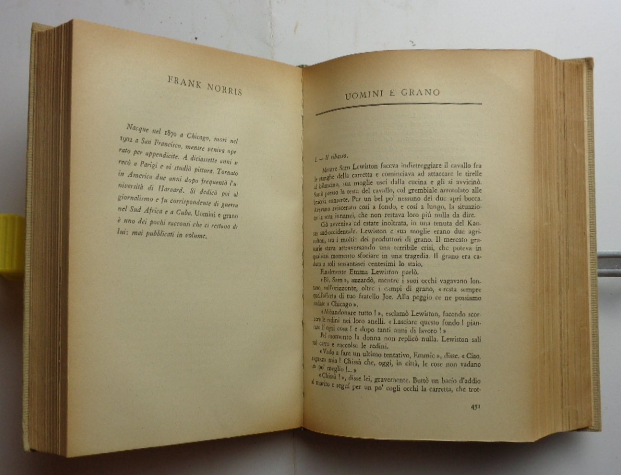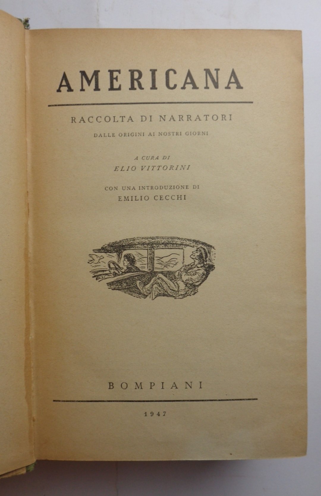 Un volume di XXIII-1041 pagine, tela editoriale con titolo dorato al dorso (manca la sovracoperta). Dimensioni: 14x21,5 cm. Dorso un po' fragile e con qualche difetto (mancanza alla cuffia superiore, strappetto a quella inferiore), margini delle pagine bruniti, ma nel complesso condizioni interne molto buone. Illustrazioni e foto in b/n fuori testo. Introduzione di Emilio Cecchi. Famosa antologia curata da Vittorini: una prima stampa datata 1941 venne mandata al macero per ordine di Corrado Pavolini, che non apprezzava né l'introduzione di Vittorini, né alcune delle altre scelte. La prefazione venne allora affidata più cautamente ad Emilio Cecchi, mentre Vittorini dovette contentarsi di inserire delle nuove illustrazioni, tra le quali foto di Evans, Stieglitz e altri grandi della fotografia americana.