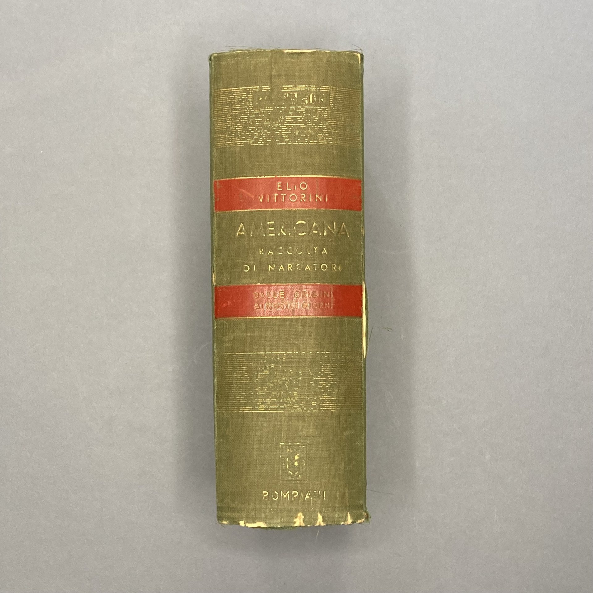 8°, cm 22, pp. XXIII, 1041, rilegatura editoriale in tela verde con titoli al dorso e fregio dorato al piatto. Numerose fotografie fuori testo. L'introduzione di Emilio Cecchi fu pretesa dalla censura del libro che il regime fascista stava esercitando. Edizione originale. Esistano pochissime copie di una versione distribuita direttamente da Vittorini agli amici con il finito di stampare datato marzo 42 invece di ottobre. In queste copie, celebre quella che Pavese regalò alla Pivano, i corsivi di Vittorini che precedono i testi antologizzati non sono epurati. Buon esemplare. Leggeri segni d'uso alle cuffie e una fenditura alla cerniera, macchioline alle prime due pagine (bianca e occhietto).. *** TUTTI I NOSTRI LIBRI SONO VISIBILI PREVIO CONTATTO MAIL O TELEFONO NELLA NUOVA SEDE DI MILANO: LIBRERIA COSMOPOLIS, VIA JOMMELLI, 22. ***