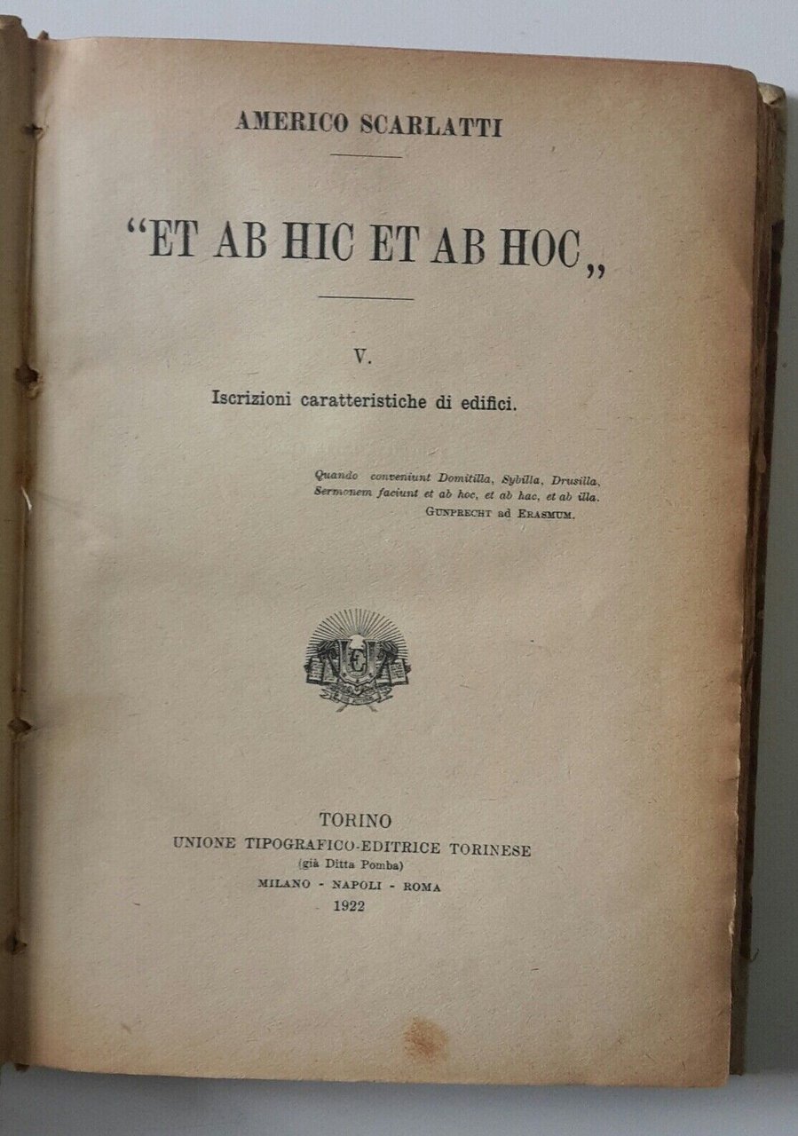 AMERICO SCARLATTI ET AB HIC ET AB HOC ISCRIZIONI CARATTERISTICHE DI EDIFICI 1922