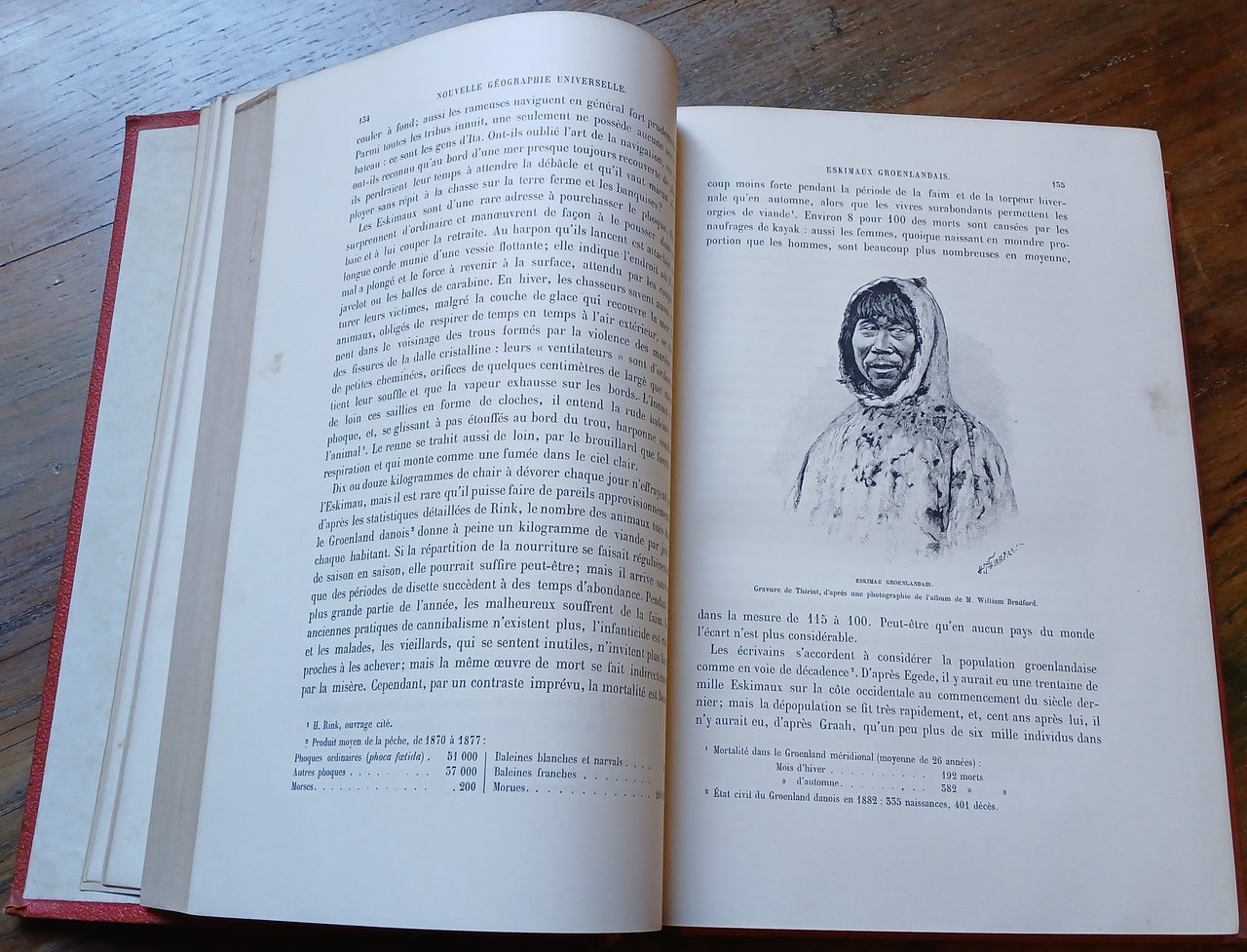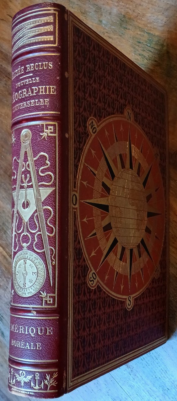 Peso di spedizione : 5.000 g (Opere geografiche di Reclus - Terre boreali) In 4°, bella legatura editoriale (firmata Magnier) con dorso in marocchino rosso, piatti in tela, tagli dorati. Ai piatti emisferi e rosa dei venti impressi in nero ed oro, al dorso strumenti scientifici, titolo e fregi dorati, pp. (4),721,(3) con 55 vedute (molte a piena pagina) nel testo, 165 carte n. t. e 4 carte geografiche a colori fuori testo. Collana "Nouvelle Gèographie Universelle". Volume ben conservato.