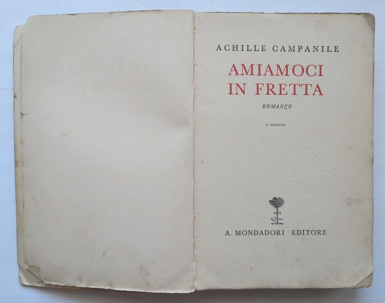 AMIAMOCI IN FRETTA di Achille Campanile 1933 Mondadori libro romanzo umoristico