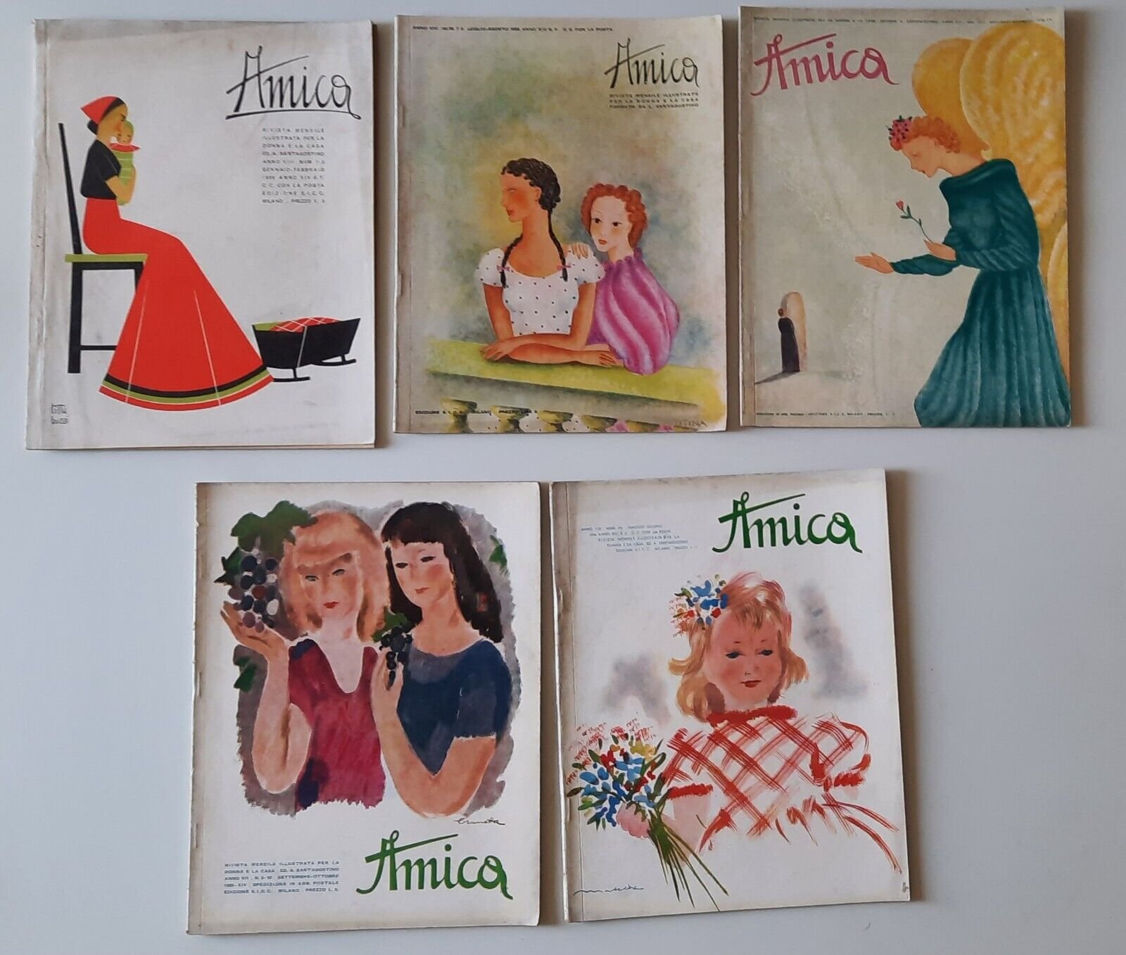 AMICA RIVISTA MENSILE PER LA DONNA E LA CASA ANNATA 1936 5 NUMERI MODA DESIGN