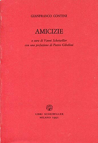 Contini, Gianfranco Amicizie. , Libri Scheiwiller 2007 italiano, 212 Edizione Scheiwiller - Prosa n. 36 - del 1 febbraio 1991 ( copia numero 89 di mille copie numerate )- in COPERTINA FLESSIBILE con alette informative. Copertina con diverse usure e in particolare lungo il dorso, lungo i margini e sugli spigoli, ma integra. Condizioni accettabili. Pagine all'interno leggermente imbrunite fattore tempo ma in buone condizioni. Aloni di polvere ai tagli, in particolare al taglio superiore. Disponibilità immediata e spedizione con corriere tracciata.