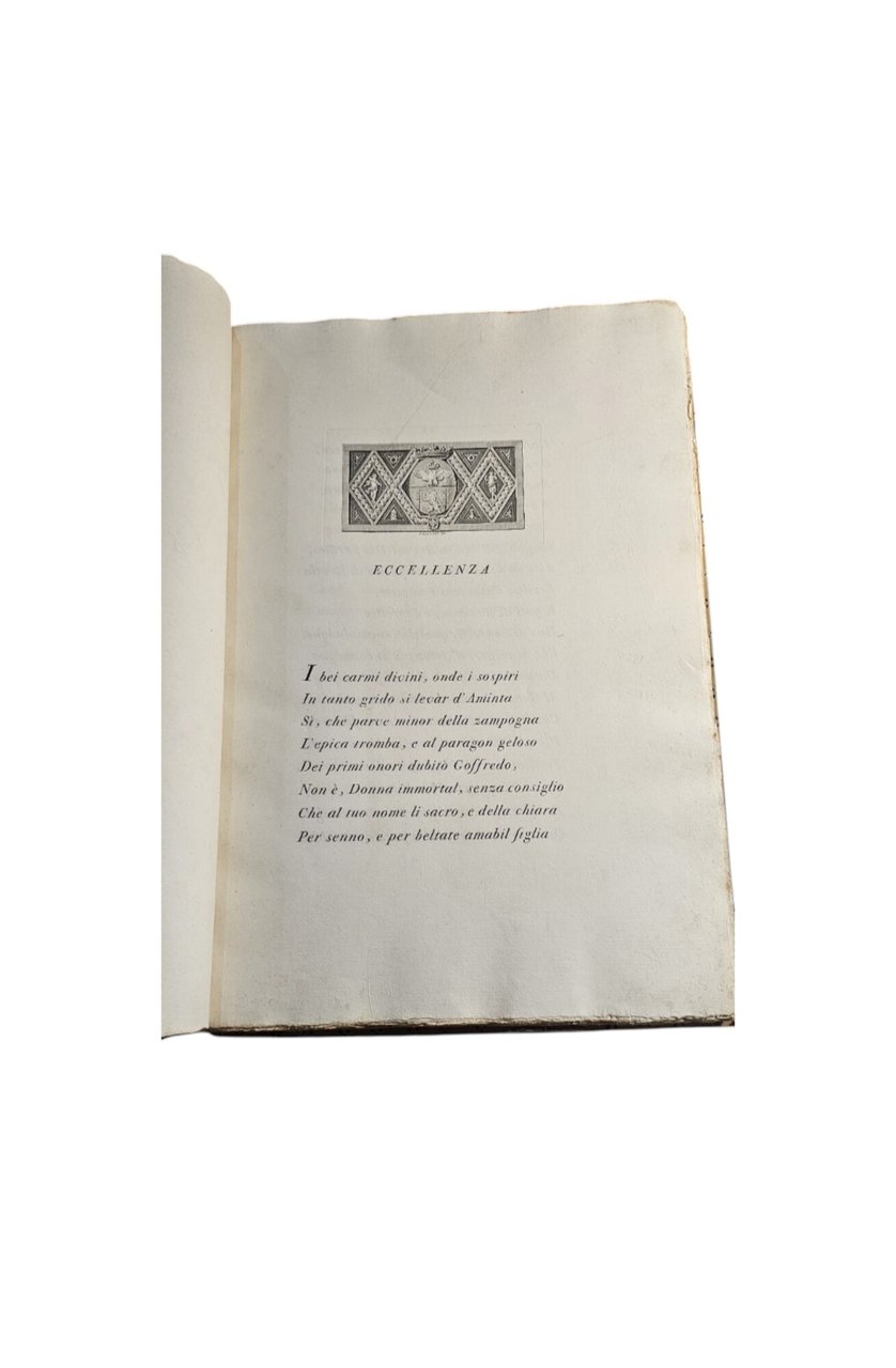 bel capolettera inciso da G. Locatelli raffigurante lo stemma della Marchesa Anna Malaspina della Bastia a cui è dedicata l'opera