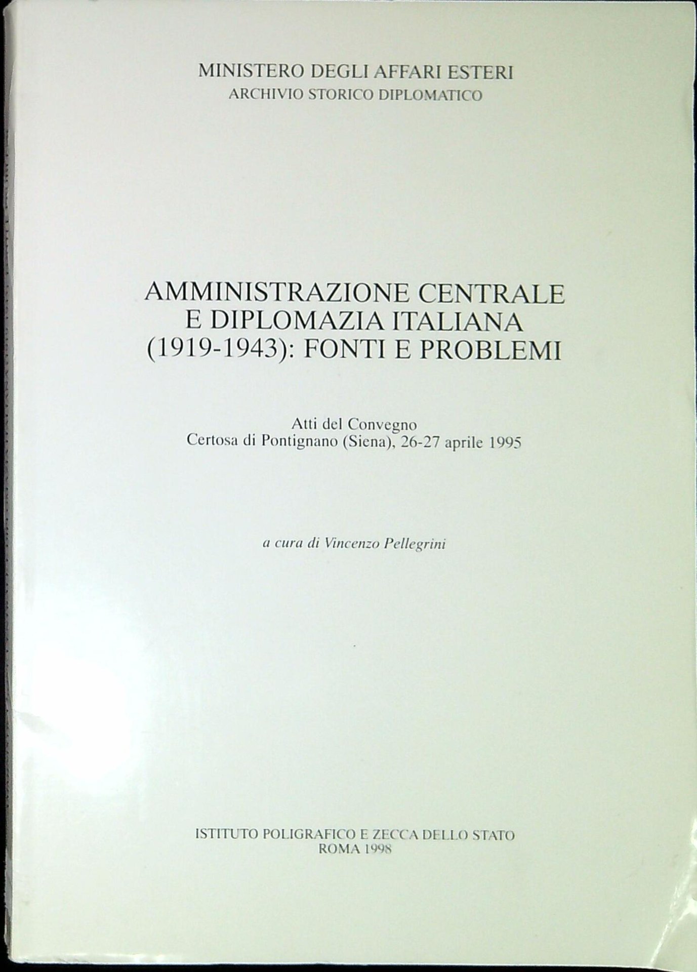 Amministrazione centrale e diplomazia italiana (1919-1943): fonti e problemi : atti del Convegno, Certosa di Pontignano (Siena), 26-27 aprile 1995