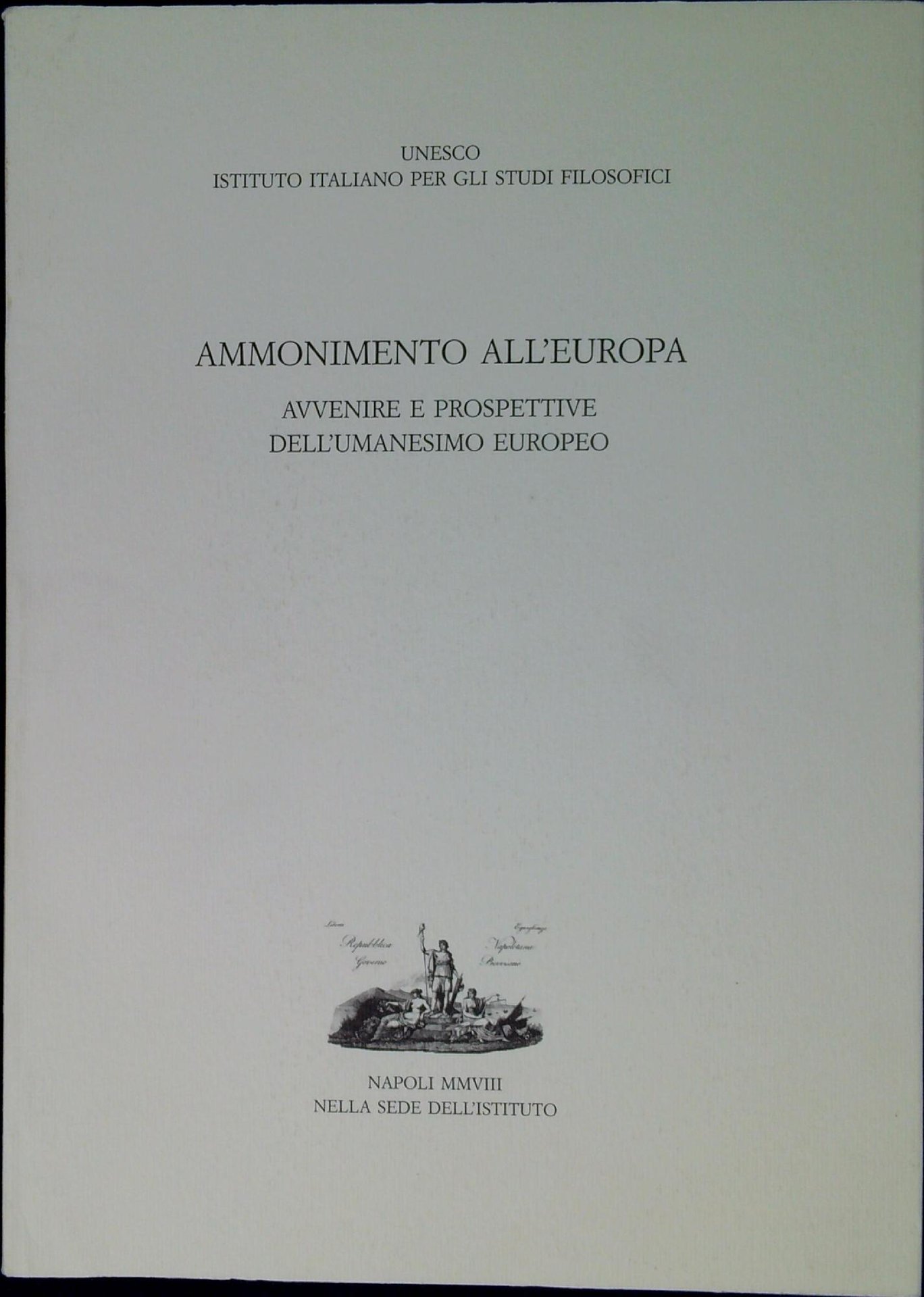 AA.VV. Ammonimento all'Europa : avvenire e prospettive dell'umanesimo europeo Parigi, 20 novembre 2003. Napoli, Istituto italiano per gli studi filofosifici 2007, 96 p. ; 24 cm Ed. f.c. (41082)