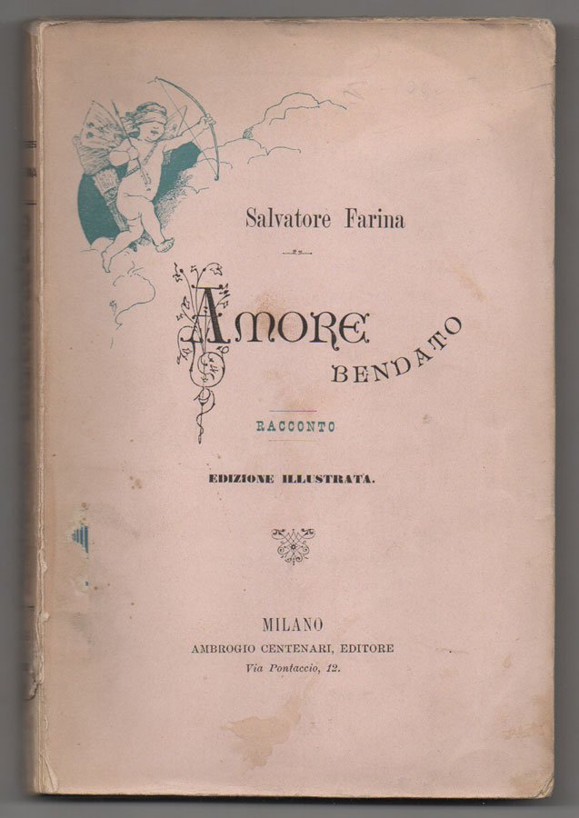 LIBROPrima edizione illustrata.Mancanza al piede del dorso, qualche segno del tempo alla brossura, nel complesso esemplare molto buono, freschissimo all’interno.Le illustrazioni sono opera del pittore G. Canella e le incisioni di A. Centenari. Salvatore Farina nacque a Sorso (Sassari) il 10 gennaio 1846, ma trascorse gran parte della sua vita a Milano. Giornalista e romanziere attivissimo (si contano circa 70 romanzi usciti dalla sua penna), fu vicino alla scapigliatura milanese. I suoi libri ebbero un enorme successo, al punto che fu definito il Charles Dickens italiano: in particolare, l’«Amore bendato», uscito dapprima in rivista e poi in volume nel 1875, nel giro di quindici anni godette di sette edizioni e fu tradotto in francese, tedesco, inglese, russo, spagnolo, olandese, svedese, portoghese e ungherese.