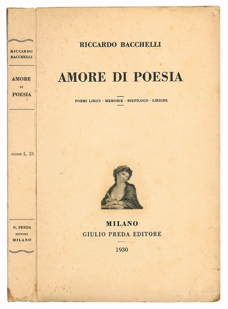 In 16mo (mm 176x109); pp. 239, [9], [1] c. di tav. fuori testo. Occhietto, ritratto dell'autore protetto da velina inciso da Anselmo Bucci all'antiporta. Carta leggermente ed uniformemente brunita. Brossura editoriale illustrata. Angolo inferiore esterno della copertina anteriore un po' arricciato, ma nel complesso ottimo esemplare in barbe e ancora a fogli chiusi. Prima edizione, tiratura "su carta velina bianca per i librai", copia n. 506 F.