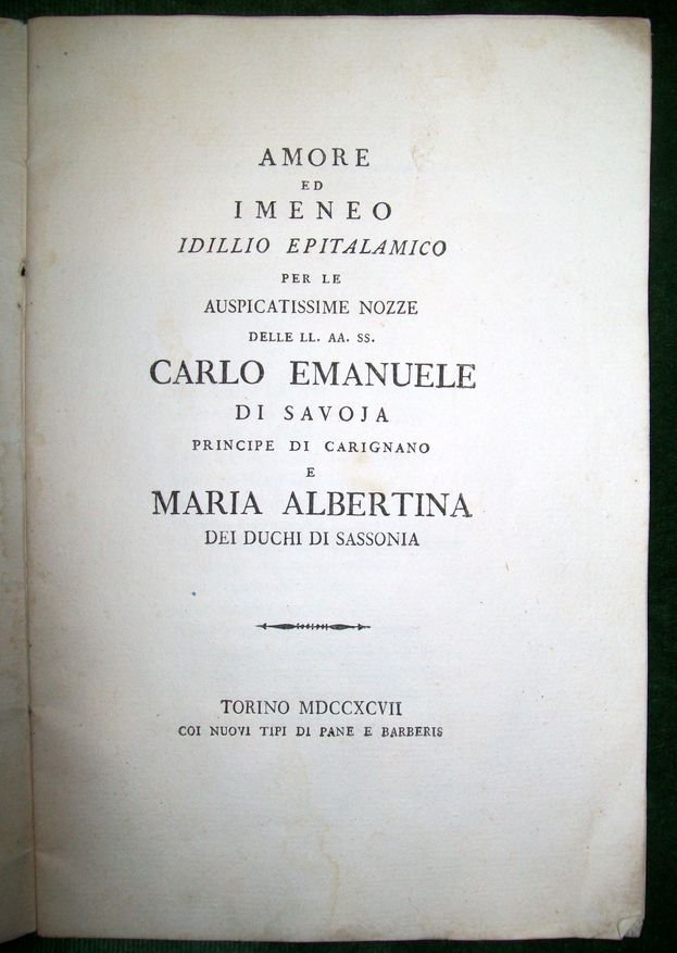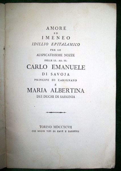 Amore ed Imeneo. Inno epitalamico per le auspicatissime nozze delle LL. AA. SS. Carlo Emanuele di Savoja principe di Carignano e Maria Albertina dei duchi di Sassonia
