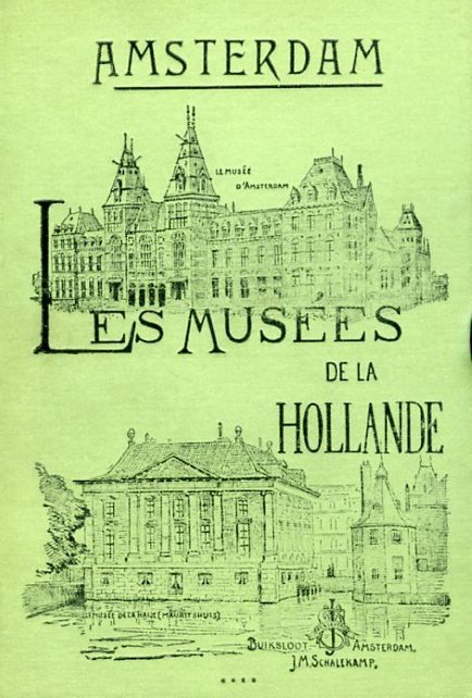 In-16°, legatura editoriale in t. tela verde con titolo e illustrazioni in nero raffiguranti le architetture di musei di Ansterdam. Albo leporello di 13 fotografie originali riproducenti dipinti di scuola olandese e fiamminga conservati nei musei amsterdamesi. Perfetto stato.