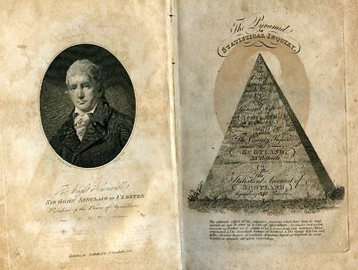 2 voll. in-8° (240x150mm); pp. XII, 439, doppia antiporta incisa su acciaio, con ritratto di Sinclair e con la 'Pyramid of Statistical Inquiry', 7 tavv. f.t su acciaio.; tabelle e grafici n.t.; pp. X, 281, 215. Cartonatura originale, con tracce di restauro, ma ottima copia con barbe nello stato originale, con ex libris (e stamp a secco) della Essex Agricultural Society. Firme di appartenenza. Sir John Sinclair (1754-1835) economista e tra i massimi esperti di agricoltura del tempo (soprannominato 'Agricultural Sir John', fu il primo President of the Board of Agriculture; sul suo biglietto da visita v'era disegnato un aratro!); scrisse una importante 'History of the Public Revenue of the British Empire' (1784); fu in rapporti sia con Smith che Ricardo, partecipò attivamente al dibattito sul ritorno all'oro all'epoca del Bullion Report; si propose di riassumere lo scibile umano in quattro parti: agricoltura, sanità, economia politica e religione. Kress B.6393. McCulloch p.218: 'An unequal, and, in some respects, antiquated, but still a very valuable work'. Manca alla Biblioteca Einaudi.