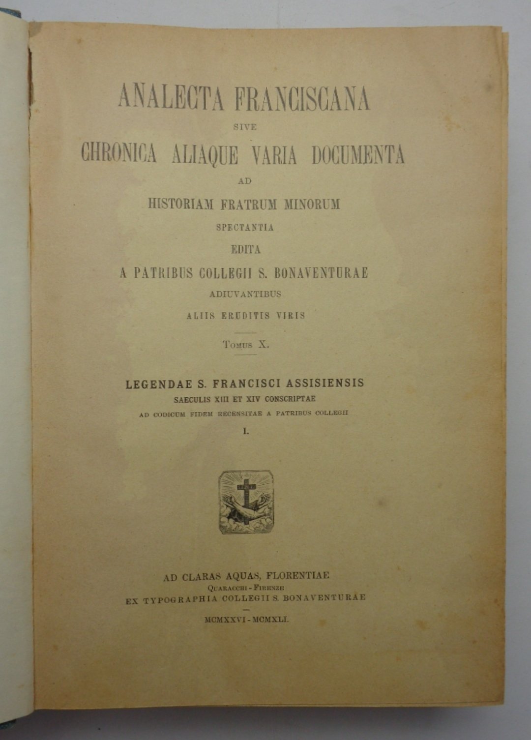 ANALECTA FRANCISCANA sive chronica aliaque varia documenta ad historiam Fratrum Minorum spectantia, TOMUS X: LEGENDAE S. FRANCISCI ASSISIENSIS saeculis XIII et XIV conscriptae, ad codicum fodem recensitae a patribus collegii. I.