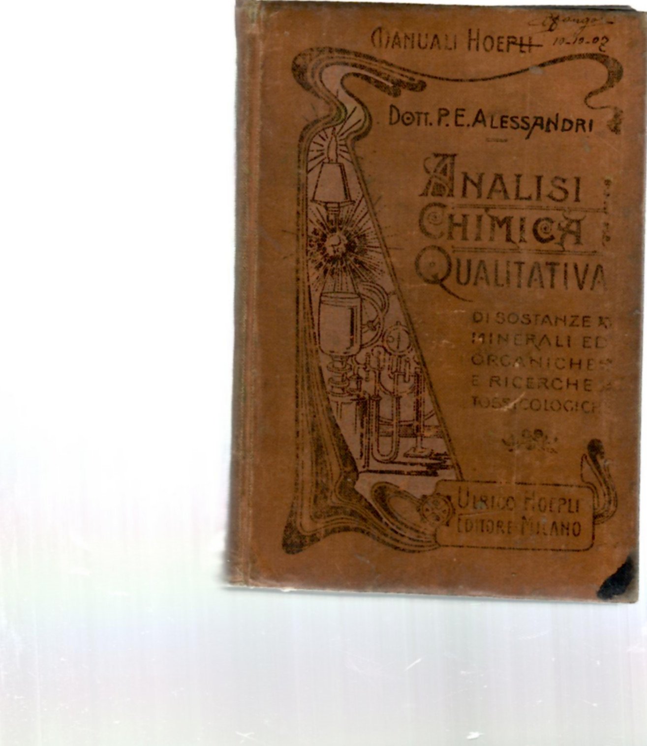 Manuali Hoepli. Volume cartonato rigido di pagine IX-384+64 di catalogo manuali. Seconda edizione interamente rifatta con 14 incisioni, numerose tabelle e 5 tavole cromolitografiche. Legatura editoriale in tela un po' allentata, macchie e segni di usura ai piatti, firme di precedenti proprietari alle prime carte, cerniera restaurata. Spedizione in 24 ore dalla conferma dell'ordine.