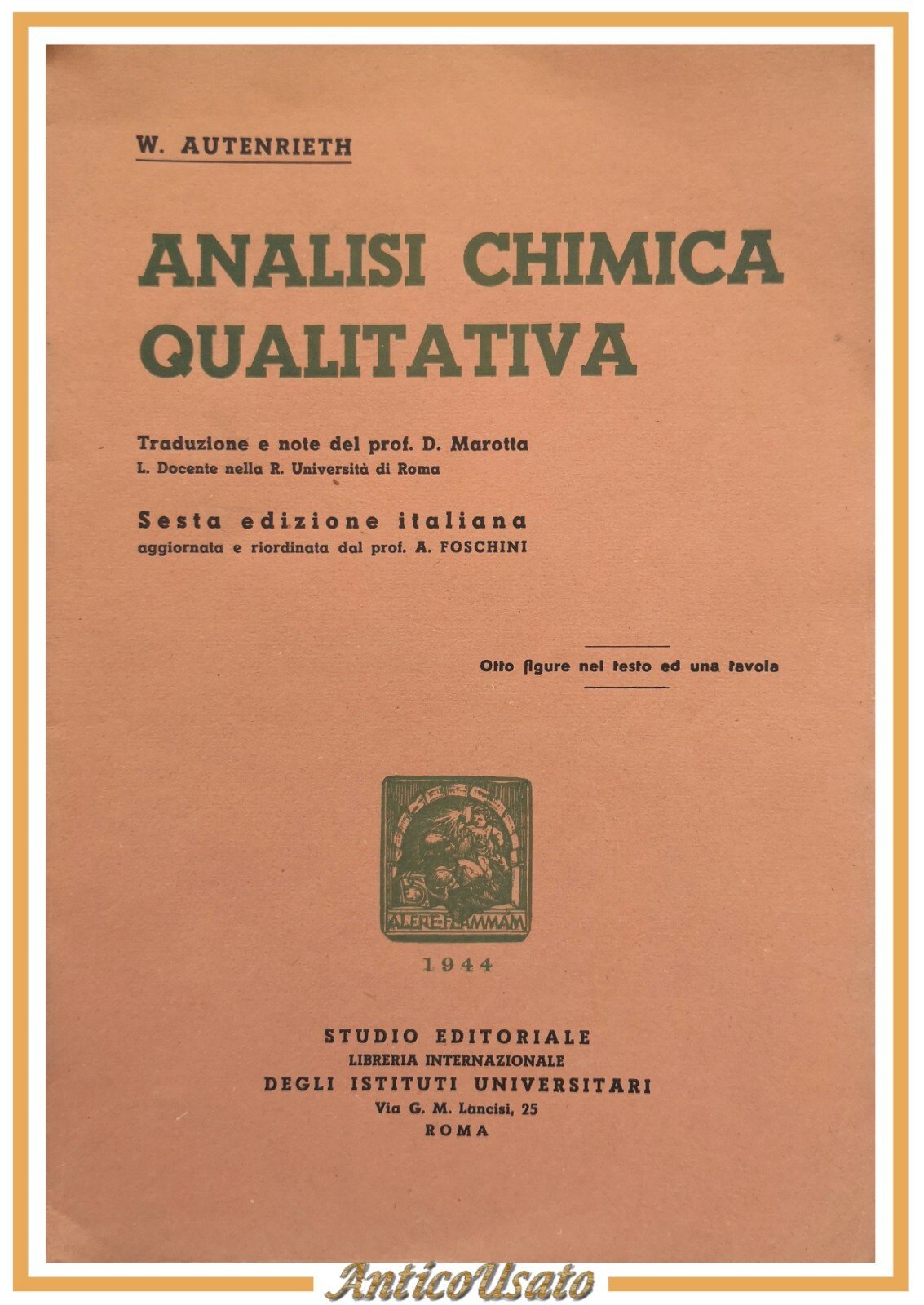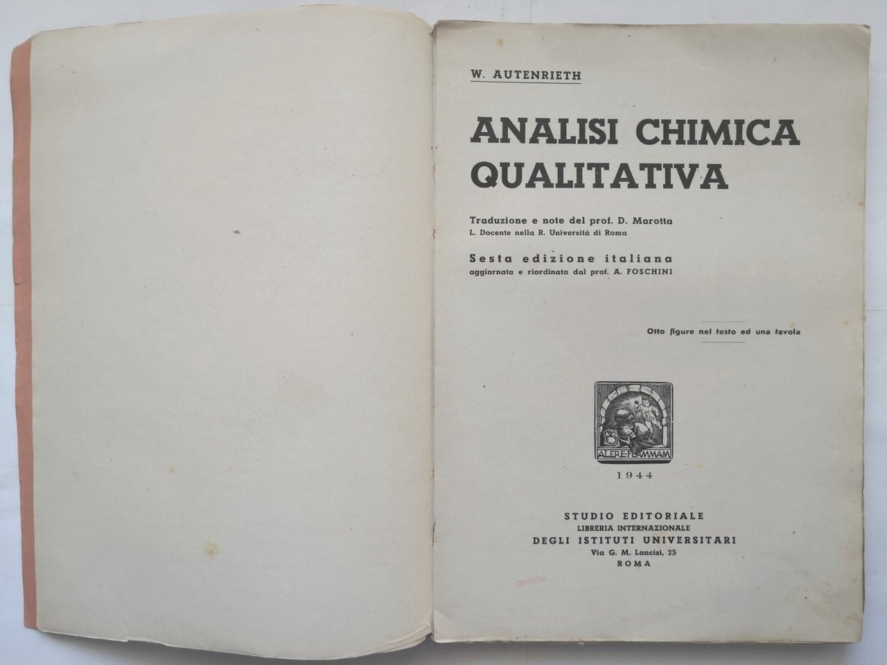ANALISI CHIMICA QUALITATIVA di W Autenrieth 1944 Studio Editoriale Libro