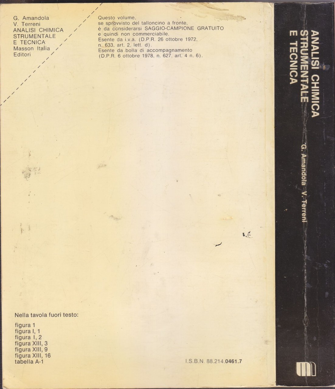 ANALISI CHIMICA STRUMENTALE E TECNICA di G Amandola V Terreni 1980 Masson Libro