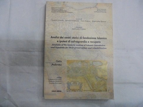 PALERMO, HELIX MEDIA, 1998. Analysis of the historic centres of islamic foundation and hypotesis for their preservation and rehabilitation. In 8∞: pp. 161. Con scritti di autori vari. Alcune ill. in b.n. A cura di Daniele Gulotta, Giovanni Lombardo, Fabio Naselli, Ferdinando Trapani. Prefazione di Leonardo Urbani. Br. edit. fig. Testo in Italiano ed Inglese.