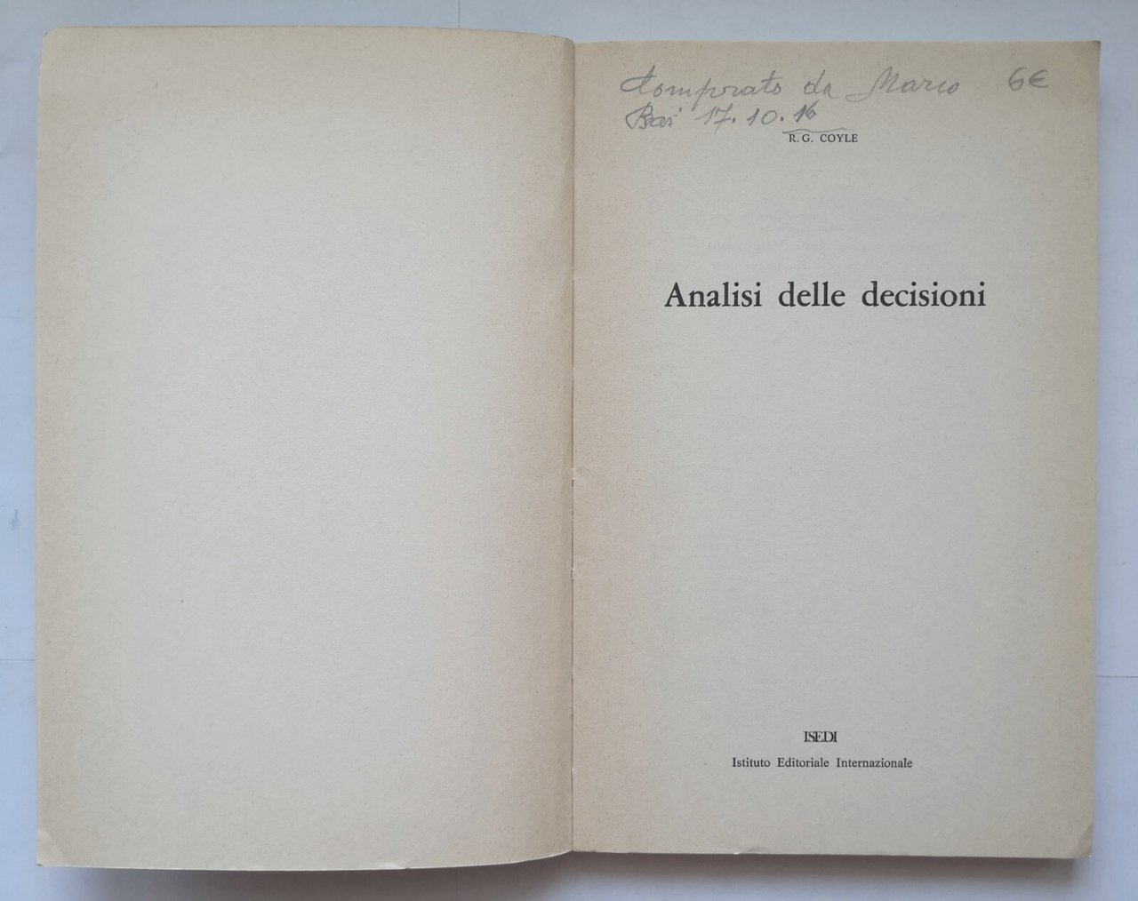 ANALISI DELLE DECISIONI di R.G. Coyle.