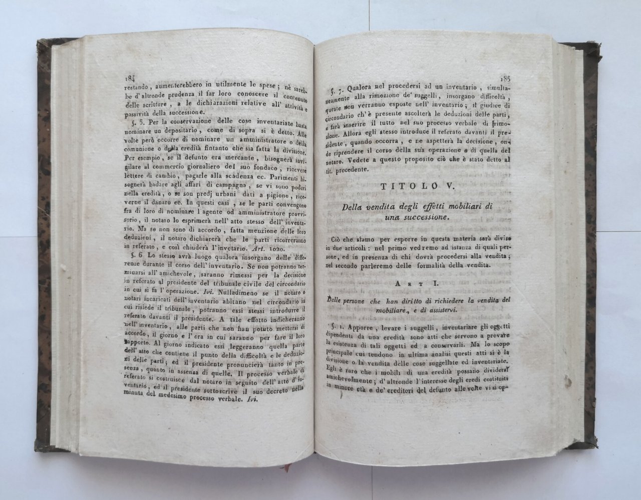 Napoli, dai torchi di Luca Marotta, 1820. 272 + 238 pagine. Copertina coeva in tutta pelle con titoli dorati entro tasselli al dorso. Dimensioni: 21,5 x 14 cm. Stato di conservazione: molto buono (fioriture, piccole spellature al dorso)Libro antico diritto giurisrpudenza regno borbonico