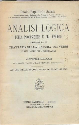 Analisi logica della proposizione e del periodo preceduta da un Trattato sulla natura dei verbi e sul modo di adoperarli