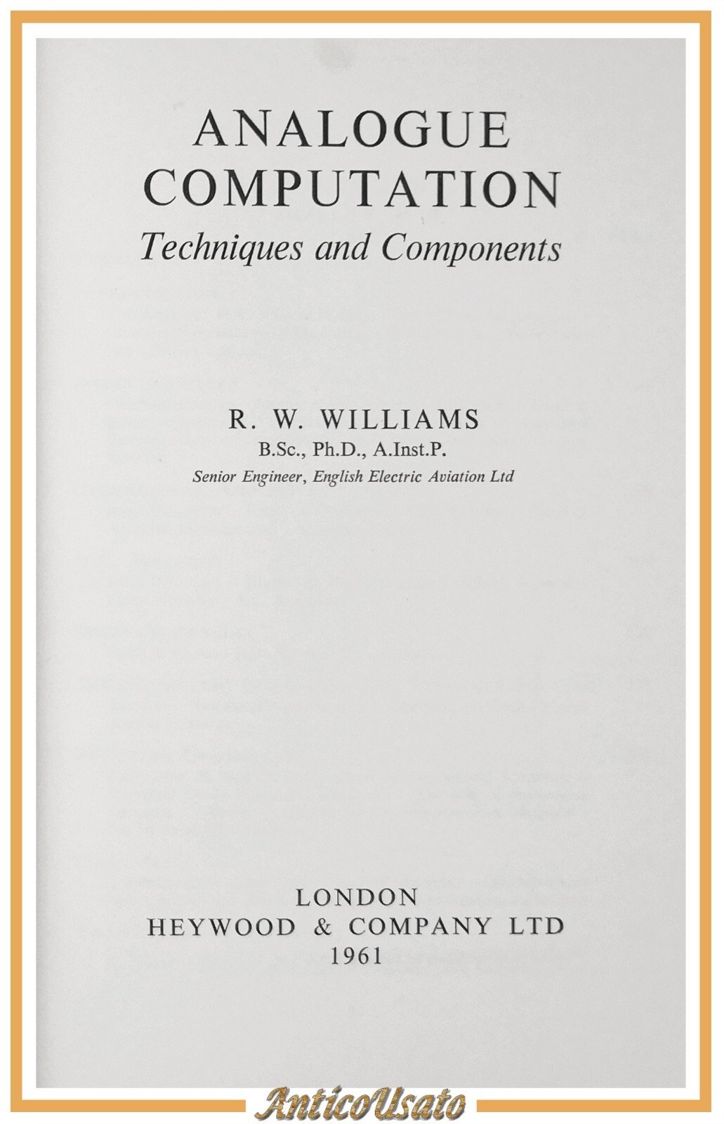 ANALOGUE COMPUTATION di Williams 1961 Heywood Techniques and Components Libro