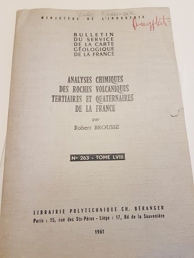 ANALYSES CHIMIQUES DES ROCHES VOLCANIQUES TERTIAIRES ET QUATERNAIRES DEL LA FRANCE BULLETTIN DU SERVICE DEL CARTE GEOLOGIQUE DE LA FRANCE