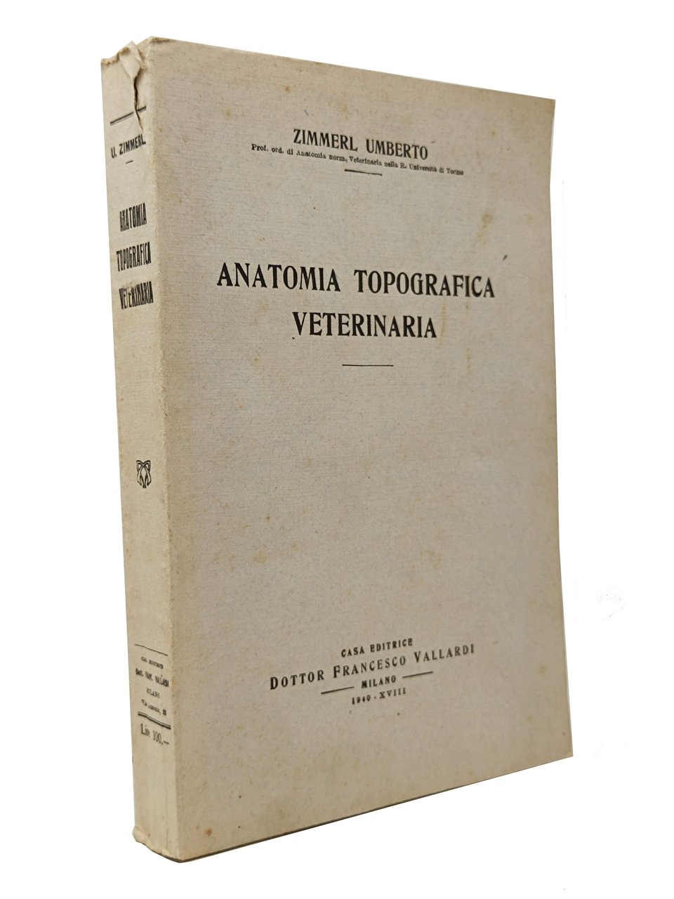 Autore: Zimmerl Umberto (Prof. ord. di Anatomia nomr., Veterinaria nella R. Università di Torino). Milano, Casa Editrice Dottor Francescpo Vallardi. Anno: 1940. Formato: 17 x 25,5 cm circa. Pagine: XV + 579. Stato di conservazione: piccolo strappetto senza mancanza sul margine superiore del dorso, rilegatura leggermente allentata (tutte le pagine sono , comunque, saldamente ancorate al corpo del volume), qualche ingiallimento marginale, 5 righe di testo sottolineate a biro blu a pagina 254 ma, nel complesso, un esemplare abbastanza ben conservato. Con 319 figure in nero e a colori nel testo. Brossura con copertina flessibile.