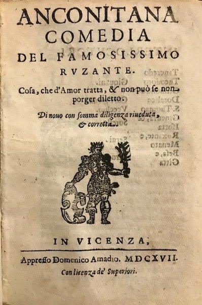 Anconitana. Comedia del famosissimo Ruzante. Cosa, che d’Amor si tratta, & non può se non porger diletto. Di novo con summa diligenza riveduta, & corretta