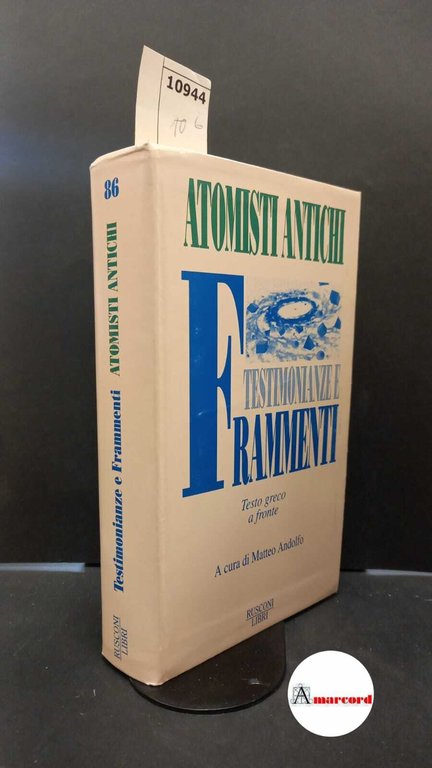 1124 aa.vv. Andolfo, Matteo. , Diels, Hermann. , Kranz, Walther. Testimonianze e frammenti : atomisti antichi. Santarcangelo di Romagna Rusconi libri, 1999. , Rusconi libri 1999 italiano, in ottavo 572 10944