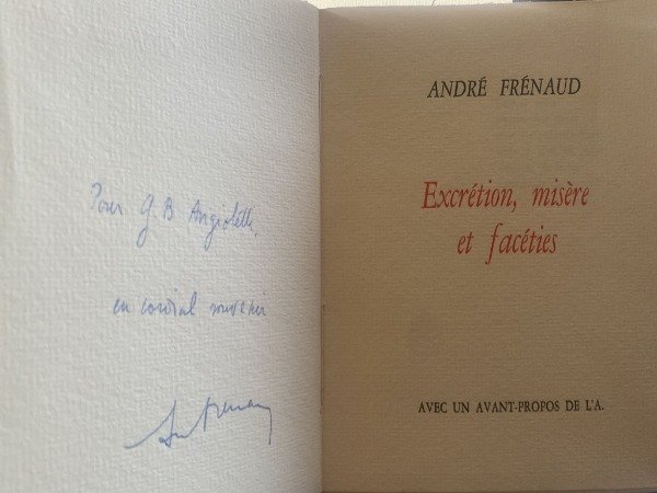 ANDRE FRENAUD EXCRETION MISERE ET FACETIES BIBLIOTECA MINIMA 1958 CON DEDICA AUTOGRAFA DELL'AUTORE