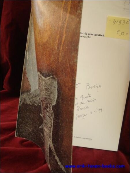 Softcover, geillustreerde papieromslag, foto-frontispice in kleur, 29.3x20.7 cm., 171 pp., uitgebreide illustratie in kleur en z/w. Overzicht van werken van deze Antwerpse kunstenaar. Publikaties Museum Plantin-Moretus. Met handgeschreven opdracht van vier regels, gedateerd Parijs,1999.