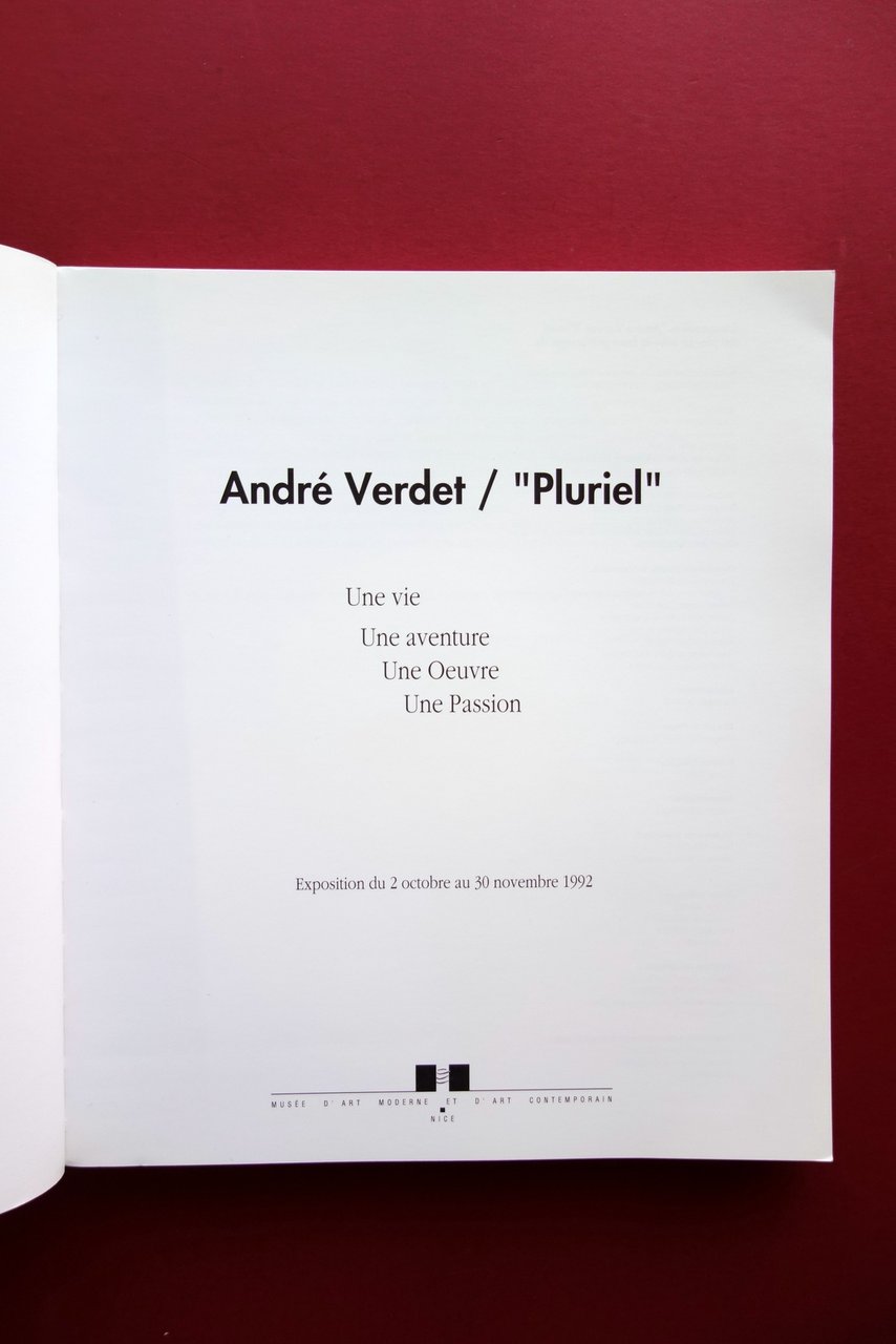 Catalogo, André Vertet Pluriel une vie - une aventure - une oeuvre - une passion exposition du 2 octobre au 30 novembre 1992 Musée d'Art Moderne et d'Art Contemporaine, Nice 1992; cm 27x23,5; pp. 240 con numerose ill. in b/n nel t. e a colori fuori t.; brossura ed. ill. in b/n. Testo in francese. Condizioni di conservazione Volume in condizioni più che buone, leggermente sgualcito agli angoli delle brossure. Interni ottimi. Accluso biglietto di accompagnamento (vedi foto). Testo in francese. SETT227.L23648 N