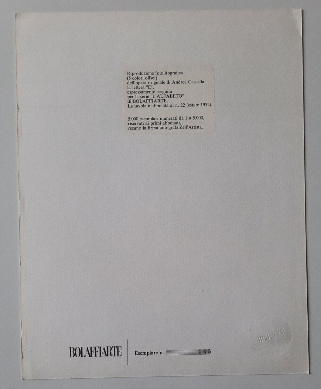 ANDREA CASCELLA LITO BOLAFFI 1972 FIRMATA